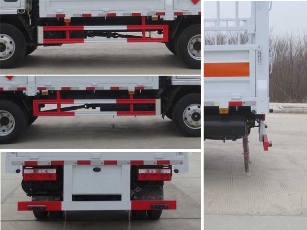 | 隨底盤選裝駕駛室,選裝燃油箱,電瓶,尿素罐,儲(chǔ)氣筒左右安裝位置;選裝廂體外觀,選裝無(wú)柵欄;選裝起重尾板(收起狀態(tài)水平長(zhǎng)度為280mm),尾板質(zhì)量為350kg,選裝不同廠家尾板及尾板樣式;運(yùn)輸具有**容器(瓶)包裝的介質(zhì)類項(xiàng)號(hào):2.1,2.2;該車為危險(xiǎn)品貨物運(yùn)輸車;僅采用前輪盤式制動(dòng)器,前置排氣管,子午線輪胎,限速裝置的底盤,限速80km/h;轉(zhuǎn)向輪安裝爆胎應(yīng)急防護(hù)裝置;發(fā)動(dòng)機(jī)CY4BK461,CY4BK161,YCY24140-60,D20TCIF1,D25TCIF1,CA4DB1-11E62,CA4DB1-13E6,CY4BK361,Q23-115E60,Q28-130E60對(duì)應(yīng)油耗申報(bào)值均為:16.2L/100km;該車安裝具有衛(wèi)星定位功能的行駛記錄儀;ABS廠家及型號(hào):襄陽(yáng)東風(fēng)隆誠(chéng)機(jī)械有限責(zé)任公司/ABS/ASR-24V-4S/4M;側(cè)面防護(hù)及后下部防護(hù)裝置材料材質(zhì):Q235,連接方式:焊接加螺栓連接;后下部防護(hù)裝置斷面尺寸(寬×高):50×100(mm),離地高度:460mm;選裝圓形后防護(hù),連接方式:焊接加螺栓連接;后下部防護(hù)裝置斷面尺寸為:Φ110mm,離地高度:400mm;該車型可選裝ETC車載裝置. | |||