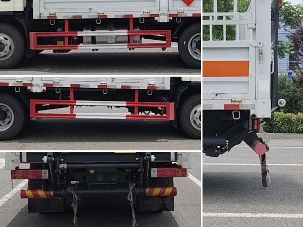 | ABS防抱死制動系統(tǒng)生產(chǎn)廠家/型號:1.廣州瑞立科密汽車電子股份有限公司/CM4XL-4S/4M;2.浙江萬安科技股份有限公司/VIE ABS-II;安裝有限速裝置;限速裝置限速(km/h):80;安裝有具有衛(wèi)星定位功能的行駛記錄儀;隨底盤選裝駕駛室,隨底盤選裝燃油箱,電瓶,尿素罐,儲氣筒左右安裝位置;選裝廂體外觀,選裝無柵欄,選裝后部結(jié)構(gòu);起重尾板為選裝件(收起狀態(tài)水平長度為280mm),尾板質(zhì)量為350kg;選裝不同廠家尾板以及尾板外觀;僅采用底盤3300mm軸距;該車選裝ETC車載裝置;發(fā)動機(jī)/油耗申報(bào)值(L/100km)對應(yīng)關(guān)系為:F2.8NS6B156/11.2,CA4DB1-13E6/11.0,WP2.3NQ130E61/11.2,WP2.3NQ120E61/11.2,H20-120E60/10.09;側(cè)面防護(hù)及后下部防護(hù)裝置材料材質(zhì):Q235,側(cè)面防護(hù)連接方式:焊接連接;后下部防護(hù)裝置連接方式:焊接加螺栓連接,斷面尺寸(直徑):Φ110(mm),離地高度:450mm;不帶起重尾板時(shí),后防護(hù)連接方式:焊接連接;后下部防護(hù)裝置斷面尺寸(寬×高):50×100(mm),離地高度:460mm;運(yùn)輸**容器(瓶)包裝的介質(zhì)類項(xiàng)號為:2.1,2.2;該車為危險(xiǎn)品貨物運(yùn)輸車;僅采用前輪盤式制動器,前置排氣管,子午線輪胎;轉(zhuǎn)向輪安裝爆胎應(yīng)急防護(hù)裝置; | |||