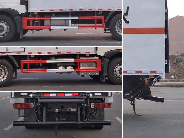 | 車廂頂部封閉不可開啟;裝EBS,EBS系統(tǒng)**器生產(chǎn)企業(yè)/型號為威伯科(上海)管理有限公司/EBS3;安裝有限速裝置;限速裝置限速(km/h):80;安裝有具有衛(wèi)星定位功能的行駛記錄儀;隨底盤選裝駕駛室;僅采用底盤軸距4275+1400mm,4575+1400mm;選裝廂體開門型式及位置;選裝瓦楞板結(jié)構(gòu)廂體;選裝后部雙拉桿結(jié)構(gòu);選裝不帶起重尾板,尾板質(zhì)量為550kg;起重尾板收起狀態(tài)水平長度為290mm;該車選裝ETC車載裝置;發(fā)動機(jī)/油耗申報值(L/100km)對應(yīng)關(guān)系為:MC07.27-60、MC07.31-60、MC07.34-60、MC07.29-60、MC07.33-60對應(yīng)36.6,發(fā)動機(jī)MC09.35-60、MC09.38-60、MC09.35B-60、MC11.40-60、MC07H.29-60、MC07H.33-60、MC07H.35-60、WP9H350E62、MC11.40-61對應(yīng)34.6;整備質(zhì)量(kg)/額定載質(zhì)量(kg)/準(zhǔn)乘人數(shù)(人)對應(yīng)關(guān)系為:10600/15270/2,10600/15205/3,11000/14870/2,11000/14805/3;側(cè)面防護(hù)及后下部防護(hù)裝置材料材質(zhì):Q235,側(cè)面防護(hù)連接方式:焊接連接;后下部防護(hù)裝置連接方式:焊接加螺栓連接,斷面尺寸(直徑):Φ120mm,離地高度:470mm;選裝不帶尾板時,后下部防護(hù)裝置斷面尺寸(寬×高):60×120(mm),離地高度:470mm;運輸**容器(瓶)包裝的貨物;危險貨物類項號:3;該車為危險品貨物運輸車;僅采用前輪盤式制動器,前置排氣管,子午線輪胎;后軸為空氣懸架;轉(zhuǎn)向輪安裝爆胎應(yīng)急防護(hù)裝置; | |||