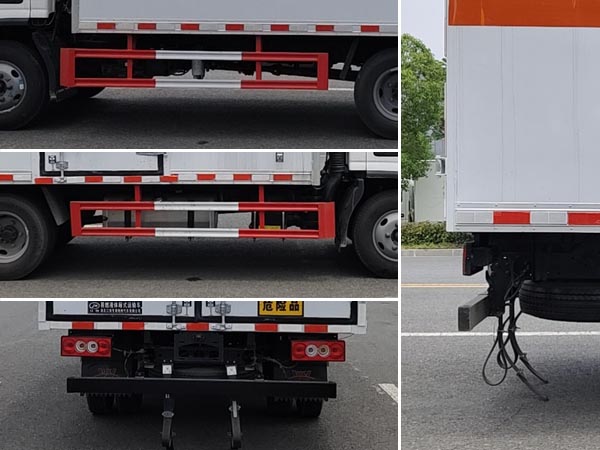 | 廂體頂部封閉,不可開(kāi)啟;廂體側(cè)面選裝開(kāi)門型式及位置,選裝不帶側(cè)開(kāi)門,選裝瓦楞板結(jié)構(gòu);選裝起重尾板(收起狀態(tài)水平長(zhǎng)度為280mm),尾板質(zhì)量為350kg;選裝不同廠家尾板以及尾板樣式;運(yùn)輸**容器(瓶)包裝的介質(zhì)類項(xiàng)號(hào)為:3;該車為危險(xiǎn)品貨物運(yùn)輸車;僅采用前輪盤式制動(dòng)器,前置排氣管,子午線輪胎,限速裝置的底盤,限速80km/h;轉(zhuǎn)向輪安裝爆胎應(yīng)急防護(hù)裝置;發(fā)動(dòng)機(jī)與油耗申報(bào)值(L/100km)對(duì)應(yīng)關(guān)系為F2.8NS6B131/11.5,Q28-130E60/11.5,F2.8NS6B156/11.5,D25TCIF1/11.5;該車安裝具有衛(wèi)星定位功能的行駛記錄儀;ABS系統(tǒng)**器型號(hào)/生產(chǎn)企業(yè):ABS-E/威伯科汽車**系統(tǒng)(**)有限公司,ABS-VI·E/廣州瑞立科密汽車電子股份有限公司;YF8/武漢元豐汽車電控系統(tǒng)有限公司;側(cè)面防護(hù)及后下部防護(hù)裝置材料材質(zhì):Q235,側(cè)防護(hù)連接方式:焊接連接;后下部防護(hù)裝置連接方式:焊接加螺栓連接,斷面尺寸(寬×高):50×100(mm),離地高度:440mm.選裝起重尾板時(shí),后下部防護(hù)裝置,斷面尺寸(直徑):Φ110(mm),離地高度:380mm.該車型可選裝ETC車載裝置. | |||