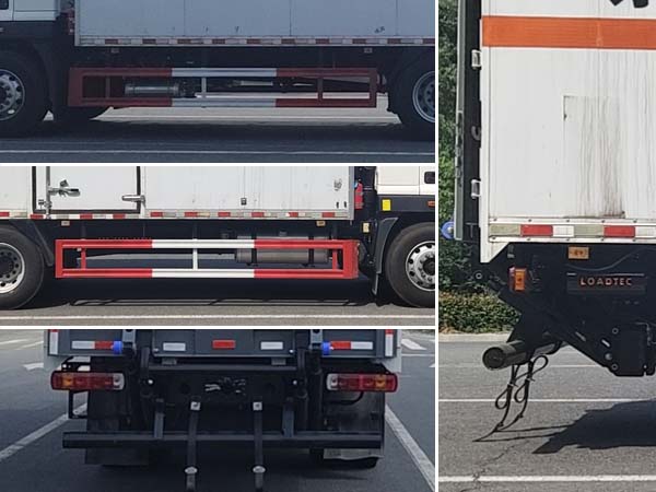 | 車廂頂部封閉不可開啟;EBS系統(tǒng)型號/生產(chǎn)企業(yè):EBS 5/克諾爾制動系統(tǒng)(大連)有限公司;安裝有限速裝置,限速裝置限速(km/h):80;安裝有具有衛(wèi)星定位功能的行駛記錄儀;隨底盤選裝駕駛室;隨底盤選裝左右附件及油箱安裝位置;選裝廂體開門型式及位置;選裝瓦楞板結(jié)構(gòu)廂體;選裝后部結(jié)構(gòu);起重尾板為選裝件(收起狀態(tài)水平長度為290mm),尾板質(zhì)量為550kg;選裝不同廠家尾板以及尾板外觀;該車選裝ETC車載裝置;發(fā)動機/油耗申報值(L/100km)對應(yīng)關(guān)系為:F4.5NS6B220/24.4,B6.2NS6B210/26.0;側(cè)面防護及后下部防護裝置材料材質(zhì):Q235,側(cè)面防護連接方式:焊接連接;后下部防護裝置連接方式:焊接加螺栓連接,斷面尺寸(直徑):Φ120(mm),離地高度:480mm;不帶起重尾板時,后防護連接方式:焊接加螺栓連接;后下部防護裝置斷面尺寸(寬×高):50×120(mm),離地高度:480mm;運輸**容器(瓶)包裝的介質(zhì)類項號為:3;該車為危險品貨物運輸車;僅采用前輪盤式制動器,前置排氣管,子午線輪胎;轉(zhuǎn)向輪安裝爆胎應(yīng)急防護裝置;后軸采用空氣懸架. | |||