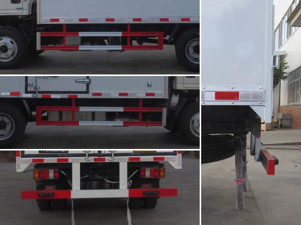 | 廂體頂部封閉,不可開啟;隨底盤選裝駕駛室;廂體側面選裝開門型式及位置,選裝不帶側開門,選裝瓦楞板結構;選裝起重尾板(收起狀態(tài)水平長度為280mm),尾板質量為350kg;運輸介質類項號為:9;該車為危險品貨物運輸車;僅采用前輪盤式制動器,前置排氣管,子午線輪胎,限速裝置的底盤,限速80km/h;轉向輪安裝爆胎應急防護裝置;發(fā)動機/油耗申報值(L/100km)對應關系為:JX4D30B6H/11.0,JX4D30A6H/11.1;該車安裝具有衛(wèi)星定位功能的行駛記錄儀;ABS系統型號:APG3550500A,ABS系統生產廠家:浙江亞太機電股份有限公司;側面防護及后下部防護裝置材料材質:Q235,連接方式:焊接加螺栓連接;后下部防護裝置斷面尺寸(寬×高):50×100(mm),離地高度:400mm;該車型可選裝ETC車載裝置. | |||