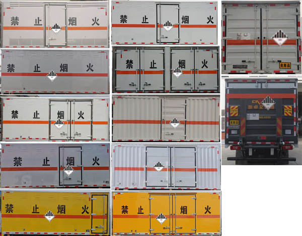 | 廂體頂部封閉,不可開啟;隨底盤選裝駕駛室,選裝儲氣筒內(nèi)置;廂體選裝瓦楞板結(jié)構(gòu),廂體側(cè)面選裝開門型式及位置或不帶側(cè)開門,選裝百葉窗;選裝起重尾板(收起狀態(tài)水平長度為290mm),尾板質(zhì)量為450kg;選裝不同廠家尾板及尾板樣式;運輸具有**容器(瓶)包裝的介質(zhì)類項號為9;該車為危險品貨物運輸車;僅采用前輪盤式制動器,前置排氣管,子午線輪胎,限速裝置的底盤,限速80km/h;轉(zhuǎn)向輪安裝爆胎應(yīng)急防護裝置;發(fā)動機/油耗申報值(L/100km)對應(yīng)關(guān)系為:F3.8NS6B156/21.02,D30TCIF1/20.39;該車安裝具有衛(wèi)星定位功能的行駛記錄儀;ABS系統(tǒng)型號:ABS-VI.E;生產(chǎn)企業(yè):廣州瑞立科密汽車電子股份有限公司.ABS系統(tǒng)型號:ABS-E;生產(chǎn)企業(yè):威伯科汽車**系統(tǒng)(**)有限公司;側(cè)面防護及后下部防護裝置材料材質(zhì):Q235,連接方式:焊接加螺栓連接;后下部防護裝置斷面尺寸(寬×高):50×100(mm),離地高度:420mm;選裝起重尾板時,后防護連接方式:焊接加螺栓連接;后下部防護裝置斷面尺寸為:Φ120mm,離地高度:420mm;該車型可選裝ETC車載裝置. | |||