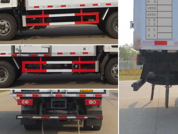 | 廂體頂部封閉,不可開啟;廂體側(cè)面選裝開門型式及位置或不帶側(cè)開門;該車用于運輸具有**容器(瓶)包裝的危險貨物類項號為:1.1 D,1.1B,1.1G ,1.1C,1.3C,1.4G,1.3C,1.1C;運送危險貨物車輛的類型:EX/Ⅲ型車輛;僅采用前輪盤式制動器,前置排氣管,子午線輪胎,限速裝置的底盤,限速80km/h;轉(zhuǎn)向輪安裝爆胎應(yīng)急防護裝置;發(fā)動機/油耗申報值(L/100km)對應(yīng)關(guān)系為:F3.8NS6B156/16.20,CY4SK261/16.09,D30TCIF1/16.19,F2.8NS6B156/15.39;該車安裝具有衛(wèi)星定位功能的行駛記錄儀;ABS系統(tǒng)型號:ABS-VI.E;生產(chǎn)企業(yè):廣州瑞立科密汽車電子股份有限公司.ABS系統(tǒng)型號:ABS-E;生產(chǎn)企業(yè):威伯科汽車**系統(tǒng)(**)有限公司;側(cè)面防護及后下部防護裝置材料材質(zhì):Q235,連接方式:焊接加螺栓連接;后下部防護裝置斷面尺寸(寬×高):50×100(mm),離地高度:460mm;該車型可選裝ETC車載裝置. | |||