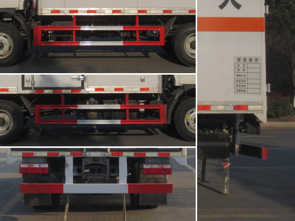 | 廂體頂部封閉,不可開啟;廂體側(cè)面選裝開門型式和位置,選裝不帶側(cè)開門;該車型可選裝ETC車載裝置;該車用于運(yùn)輸具有**容器(瓶)包裝的危險(xiǎn)貨物類項(xiàng)號:1.1 D,1.1B,1.1G ,1.1C,1.3C,1.4G;運(yùn)送危險(xiǎn)貨物車輛的類型:EX/Ⅲ型車輛;僅采用前輪盤式制動(dòng)器,前置排氣管,子午線輪胎,限速裝置的底盤,限速80km/h;轉(zhuǎn)向輪安裝爆胎應(yīng)急防護(hù)裝置;發(fā)動(dòng)機(jī)與油耗申報(bào)值(L/100km)對應(yīng)關(guān)系為:WP2.3NQ130E61/15.7;該車安裝具有衛(wèi)星定位功能的行駛記錄儀;ABS型號:CM4XL-4S/4M,VIE ABS-Ⅱ;ABS生產(chǎn)企業(yè):廣州瑞立科密汽車電子股份有限公司,浙江萬安科技股份有限公司;側(cè)面防護(hù)及后下部防護(hù)裝置材料材質(zhì):Q235,側(cè)面防護(hù)連接方式:焊接連接;后下部防護(hù)裝置連接方式:焊接連接,斷面尺寸(寬×高):50×100(mm),離地高度:450mm. | |||