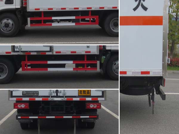 | 廂體頂部封閉,不可開啟;隨底盤選裝駕駛室;廂體側(cè)面選裝開門型式及位置,選裝不帶側(cè)開門,選裝瓦楞板結(jié)構(gòu);選裝起重尾板(收起狀態(tài)水平長(zhǎng)度為280mm),尾板質(zhì)量為350kg;該車型可選裝ETC車載裝置;該車用于運(yùn)輸具有**容器(瓶)包裝的危險(xiǎn)品貨物,類項(xiàng)號(hào):2.1,2.2;該車為危險(xiǎn)品貨物運(yùn)輸車;僅采用前輪盤式制動(dòng)器,前置排氣管,子午線輪胎,限速裝置的底盤,限速80km/h;轉(zhuǎn)向輪安裝爆胎應(yīng)急防護(hù)裝置;發(fā)動(dòng)機(jī)F2.8NS6B131,Q28-130E60,F2.8NS6B150,D30TCIF1,F3.8NS6B156,CY4SK261,4J28TC6,F2.8NS6B156,Q28-130C60對(duì)應(yīng)油耗申報(bào)值均為11.1L/100km;該車安裝具有衛(wèi)星定位功能的行駛記錄儀;ABS系統(tǒng)型號(hào):ABS-VI.E;生產(chǎn)企業(yè):廣州瑞立科密汽車電子股份有限公司.ABS系統(tǒng)型號(hào):ABS-E;生產(chǎn)企業(yè):威伯科汽車**系統(tǒng)(**)有限公司;側(cè)面防護(hù)及后下部防護(hù)裝置材料材質(zhì):Q235,連接方式:焊接加螺栓連接;后下部防護(hù)裝置斷面尺寸(寬×高):50×100(mm),離地高度:460mm. | |||
