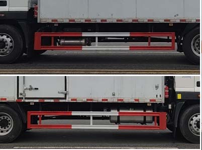 | 車廂頂部封閉不可開(kāi)啟;EBS型號(hào)廠家:EBS 5/克諾爾制動(dòng)系統(tǒng)(大連)有限公司;安裝有限速裝置;限速裝置限速(km/h):80;安裝有具有衛(wèi)星定位功能的行駛記錄儀;隨底盤選裝左右附件及油箱安裝位置;選裝廂體開(kāi)門型式及位置;選裝瓦楞板結(jié)構(gòu)廂體;選裝后部結(jié)構(gòu);選裝不帶起重尾板,尾板質(zhì)量為550kg;起重尾板收起狀態(tài)水平長(zhǎng)度為290mm;選裝不同廠家尾板及尾板樣式;該車選裝ETC車載裝置;發(fā)動(dòng)機(jī)/油耗值(L/100km)對(duì)應(yīng)關(guān)系為:F4.5NS6B220/26.8,YCS06245-60A/26.8,YCS04200-68/26.8;整備質(zhì)量(kg)/額定載質(zhì)量(kg)/準(zhǔn)乘人數(shù)(人)對(duì)應(yīng)關(guān)系為:6800/11070/2,6800/11005/3,7150/10720/2,7150/10655/3;側(cè)面防護(hù)及后下部防護(hù)裝置材料材質(zhì):Q235,側(cè)面防護(hù)連接方式:焊接連接;后下部防護(hù)裝置連接方式:焊接加螺栓連接,斷面尺寸(直徑):Φ140mm,離地高度:475mm;選裝不帶尾板時(shí),后下部防護(hù)裝置斷面尺寸(寬×高):60×120(mm),離地高度:475mm;運(yùn)輸**容器(瓶)包裝的貨物;危險(xiǎn)貨物類項(xiàng)號(hào):2.1,2.2;該車為危險(xiǎn)品貨物運(yùn)輸車;僅采用前輪盤式制動(dòng)器,前置排氣管,子午線輪胎;后軸為空氣懸架;轉(zhuǎn)向輪安裝爆胎應(yīng)急防護(hù)裝置; | |||
