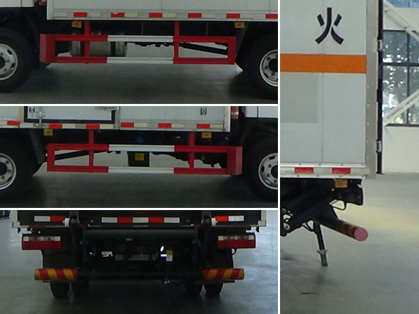 | 車廂頂部封閉不可開啟;ABS防抱死制動(dòng)系統(tǒng)生產(chǎn)廠家/型號(hào):1.廣州瑞立科密汽車電子股份有限公司/CM4XL-4S/4M;2.浙江萬(wàn)安科技股份有限公司/VIE ABS-II;安裝有限速裝置;限速裝置限速(km/h):80;安裝有具有衛(wèi)星定位功能的行駛記錄儀;隨底盤選裝駕駛室,選裝燃油箱,電瓶,尿素罐,儲(chǔ)氣筒左右安裝位置;選裝廂體開門型式及位置,選裝不帶側(cè)開門;選裝瓦楞板結(jié)構(gòu)廂體,選裝后部結(jié)構(gòu);起重尾板為選裝件(收起狀態(tài)水平長(zhǎng)度為280mm),尾板質(zhì)量為350kg;選裝不同廠家的尾板以及尾板樣式;僅采用底盤3300mm軸距;該車選裝ETC車載裝置;發(fā)動(dòng)機(jī)/油耗申報(bào)值(L/100km)對(duì)應(yīng)關(guān)系為:F2.8NS6B156/11.2,CA4DB1-13E6/11.0,WP2.3NQ130E61/11.2,WP2.3NQ120E61/11.2,H20-120E60/10.09;運(yùn)輸**容器(瓶)包裝的介質(zhì)類項(xiàng)號(hào)為:2.1,2.2;該車為危險(xiǎn)品貨物運(yùn)輸車;僅采用前輪盤式制動(dòng)器,前置排氣管,子午線輪胎;轉(zhuǎn)向輪安裝爆胎應(yīng)急防護(hù)裝置;側(cè)面防護(hù)及后下部防護(hù)裝置材料材質(zhì):Q235,側(cè)面防護(hù)連接方式:焊接連接;后下部防護(hù)裝置連接方式:焊接加螺栓連接,斷面尺寸(直徑):Φ110(mm),離地高度:410mm;選裝不帶起重尾板時(shí),后下部防護(hù)裝置連接方式:焊接連接,斷面尺寸(寬×高):50×100(mm),離地高度:450mm. | |||