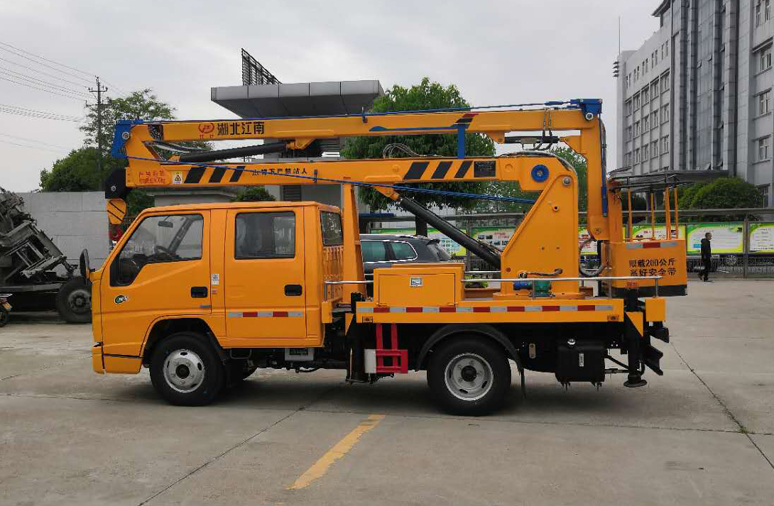 國六江鈴13米高空作業(yè)車采用江鈴JX1041TSC26底盤改裝,平頭雙排駕駛室,江鈴JX4D30B6H發(fā)動機,115馬力,國六排放標(biāo)準(zhǔn),**作業(yè)高度13米,3節(jié)折疊臂結(jié)構(gòu),上下操作,360°旋轉(zhuǎn),四個H型液壓支腿,單獨可調(diào),帶一個一噸可伸縮式小吊鉤,尾部帶工作斗;上操作部分采用電控裝置,可遠(yuǎn)程**發(fā)動機啟動,熄火。整車外形美觀,功能強大,安全系數(shù)高,擁有多項**作業(yè)安全功能,確保操作人員的作業(yè)安全,產(chǎn)品被廣泛用于電力、路燈、市政、園林、通信、機場、造(修)船、**、廣告、攝影等高空作業(yè)**域。是市政管理、供電維修、**管理等部門進(jìn)行電力維修、路牌標(biāo)志安裝等高空作業(yè)的理想用車。 |